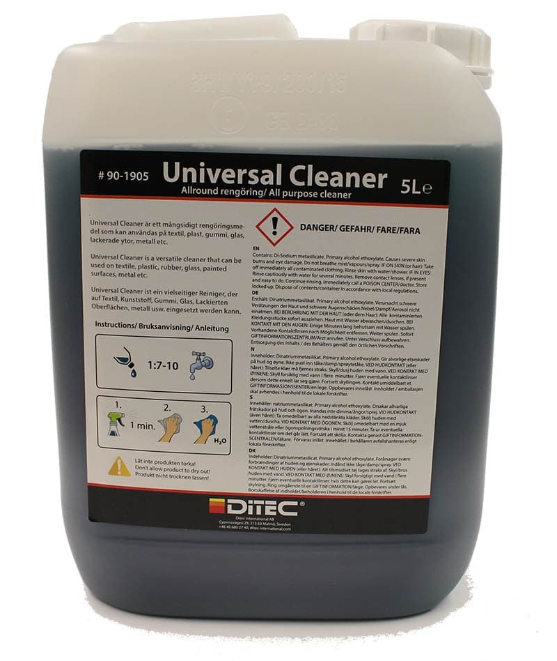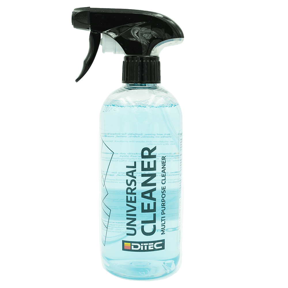 Ditec Universal Cleaner er en miljøvennlig spray-såpe av høy kvalitet som er veldig allsidig! Vår unike formula gjør at Ditec Universal Cleaner er trygg og effektiv på flere ulike materialer og overflater, inkludert gummi-detaljer, plast, felg og vinyl. Universal Cleaner kan brukes like godt både utvendig og innvendig, og reduserer antall rengjøringsmidler du trenger for å holde bilen ren.