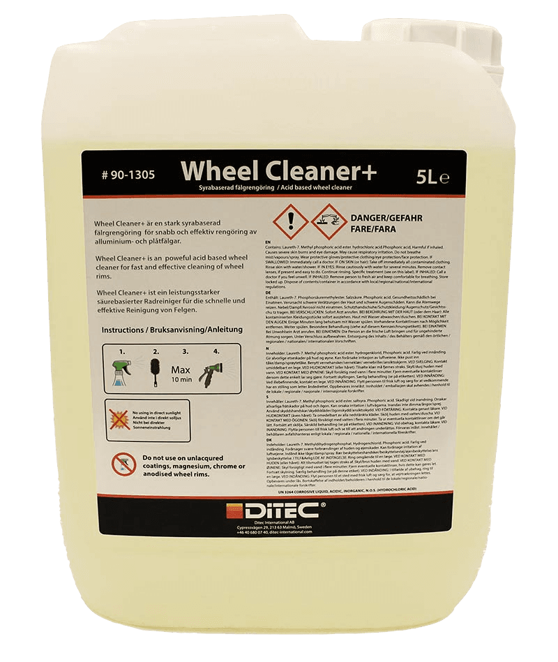 Ikke på lagerWheel Cleaner CS er en effektiv felgrens av høy ytelse GEL for dekk og felger som er syrefritt. Det er en kraftig rensemiddel som fjerner smuss, bremsestøv og andre skittrester fra felgene og dekkene dine. Det er enkel å bruke og kan brukes på både stål- og aluminiumsfelger. Det er også biologisk nedbrytbart og inneholder ikke skadelige kjemikalier, noe som reduserer risikoen for skader på mennesker og miljøet. Brukervennlig produkt Ikke-giftig Ikke-rykende og duftende - en total fornøyelse å jobbe med. Ikke-etsende for huden. Ikke-korrosiv til bløtt stål. Alle brukervennlige funksjoner gjør Ditec Wheel Cleaner CS mye sikrere i bruk enn konvensjonelle syrebaserte hjulrensere.